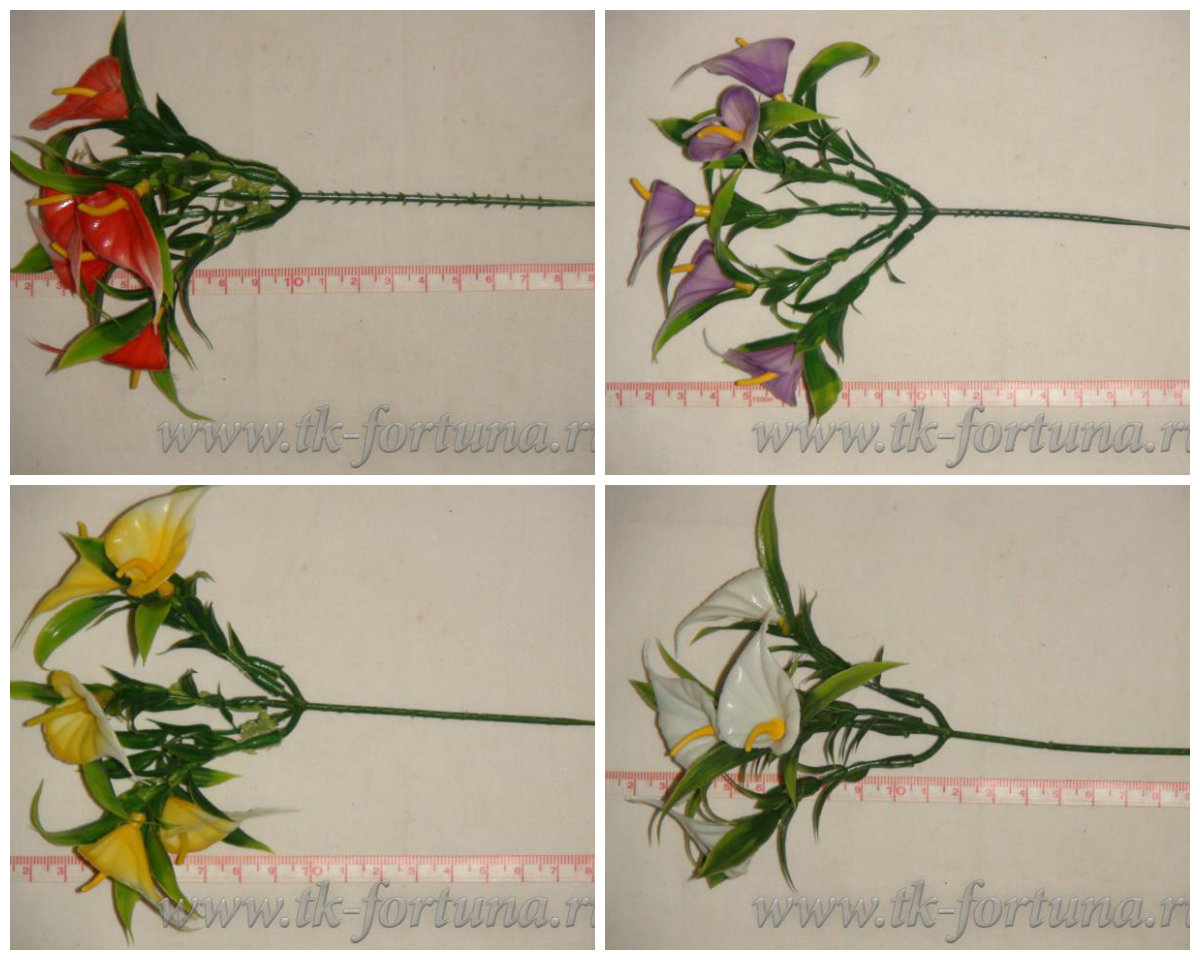 20-1966Г Букет калл 5 веток, 5 цветков, 25 см., пластик, фиолетовый 18.70 - 1 шт.