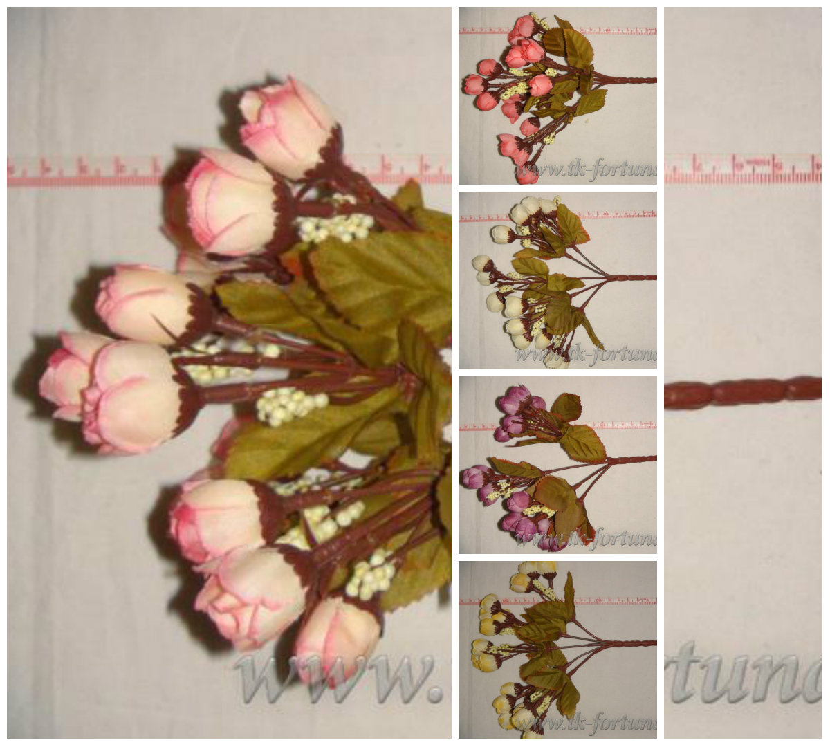 20-1964Б Букет розочек 5 веток, 15 цветков, 24 см., ткань, пластик, белый