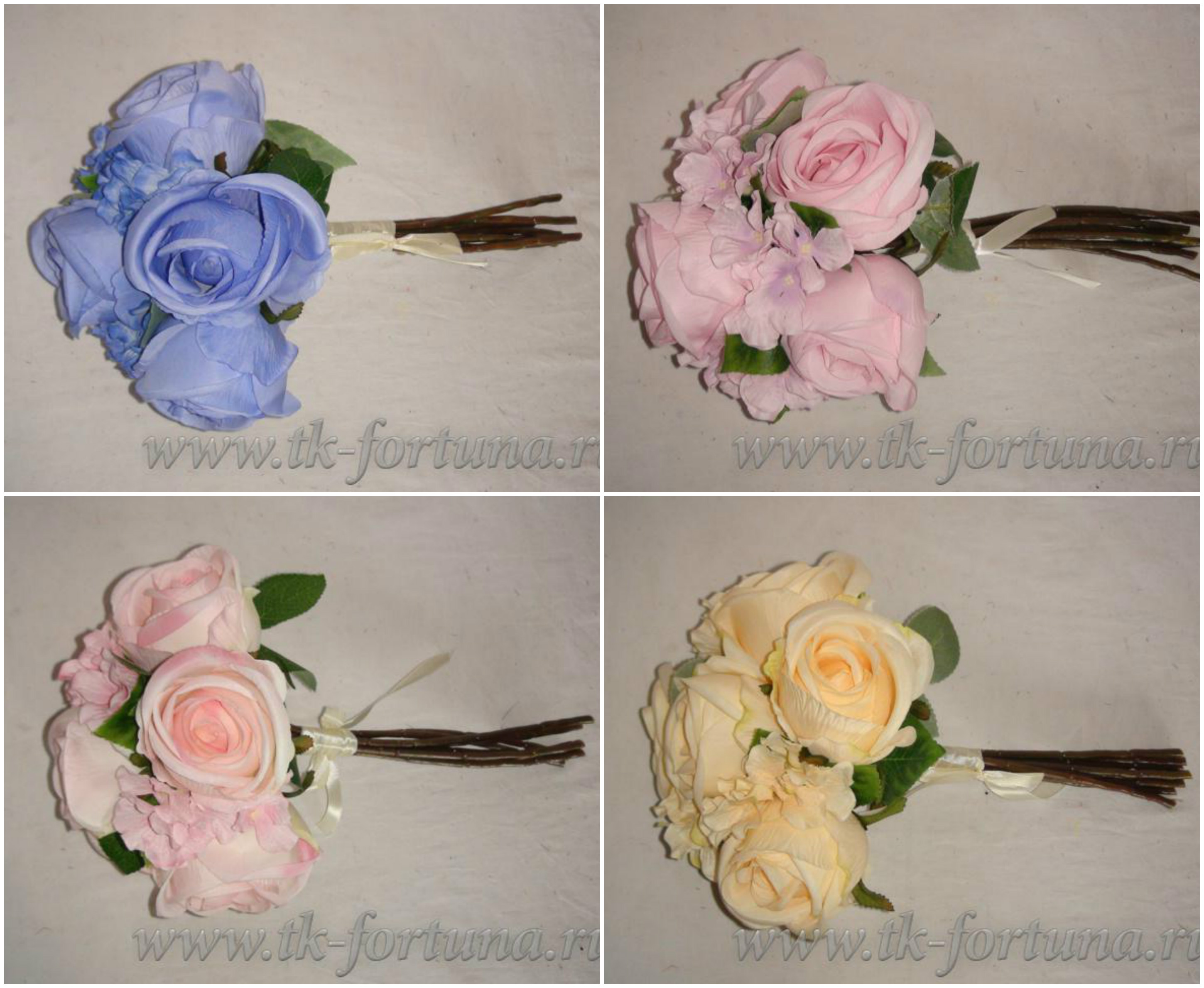 18-136В Букет свадебный из роз с гортензией бежевый, 28 см., пластик, ткань