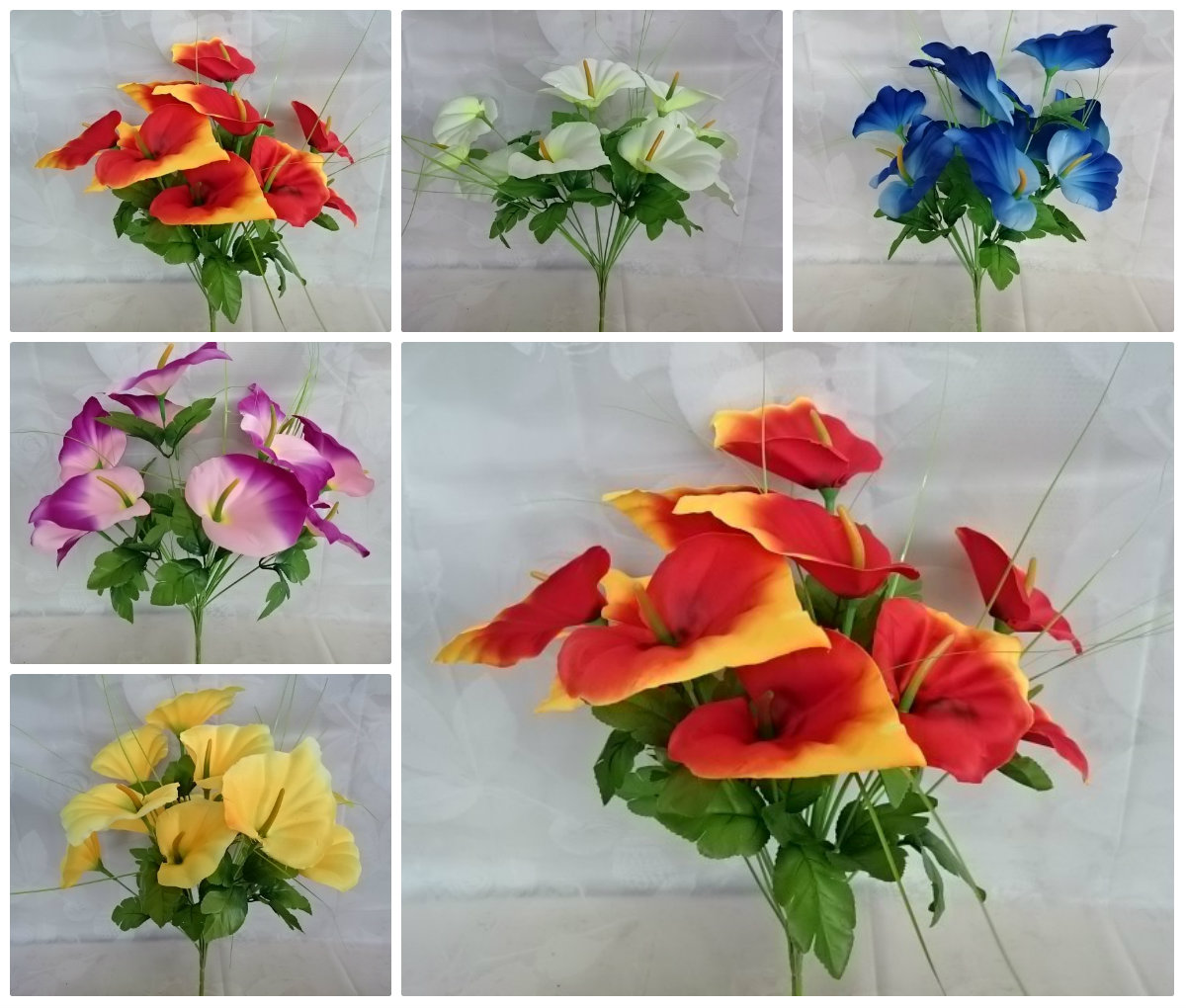 20-2014В Букет калл L40 см, 12 голов 10*10 см, пластик, ткань. синий